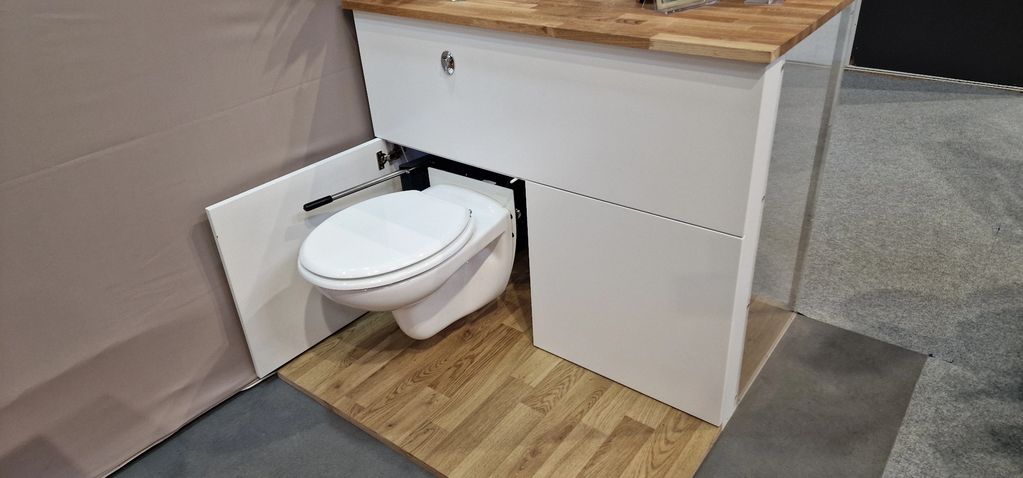 Hidealoo's ground-breaking retractable toilet mechanism. It’s a unique solution for small spaces or for discreetly creating an additional toilet in your home, personal office / workspace or holiday Home.